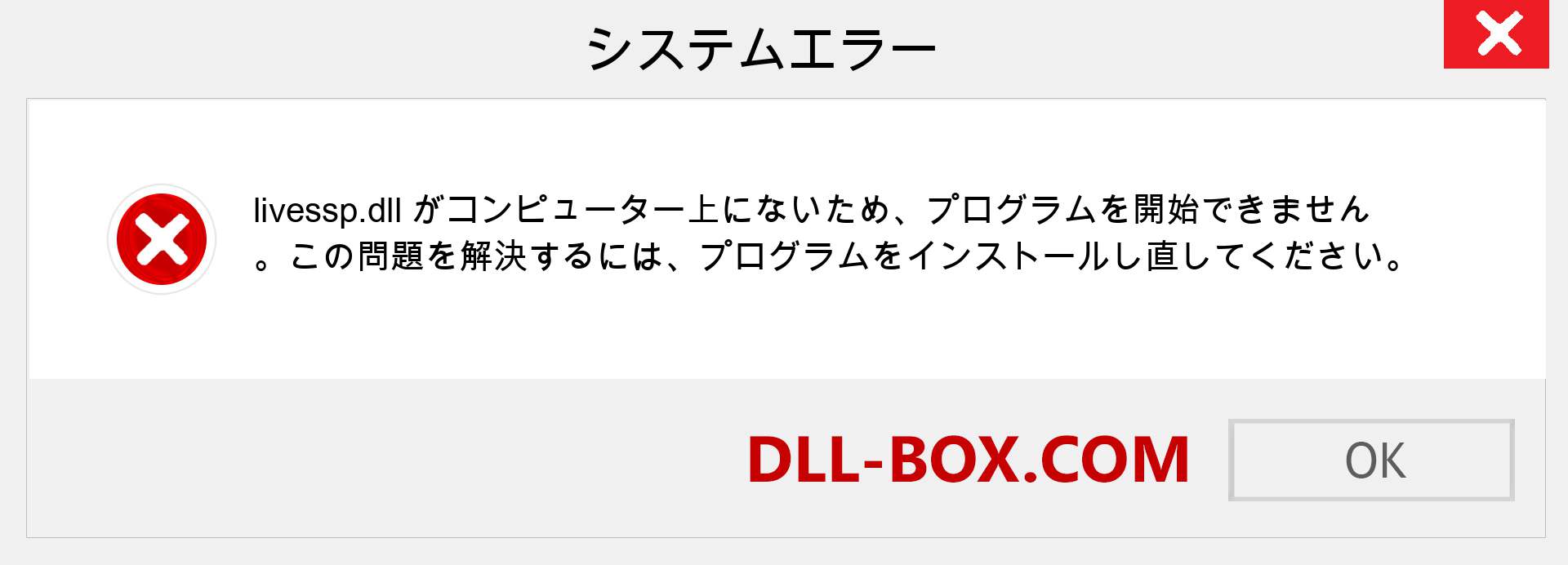 3. livessp.dllのロード中にエラーが発生しました。指定されたモジュールが見つかりませんでした。